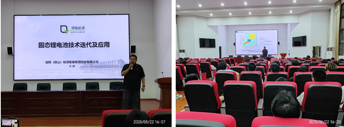 为推进材料科学与工程学院储能科学与工程专业应用创新型本科人才培养,强化产教融合、协同育人,加强《材料科学前沿(四)》课程建设水平,储能科学与工程专业于2025年5月22日邀请清陶(昆山)能源发展股份有限公司高级工程师/总经理李峥在组阶03报告厅为同学们做了“固态锂电池技术迭代及应用”的精彩报告。本讲座由能源科学与工程系系主任田传进、储能科学与工程专业负责人王乐莹、新能源材料与器件专业负责人李鹏章主持,由储能科学与工程专业、新能源材料与器件专业以及其他专业的23级本科生参加。