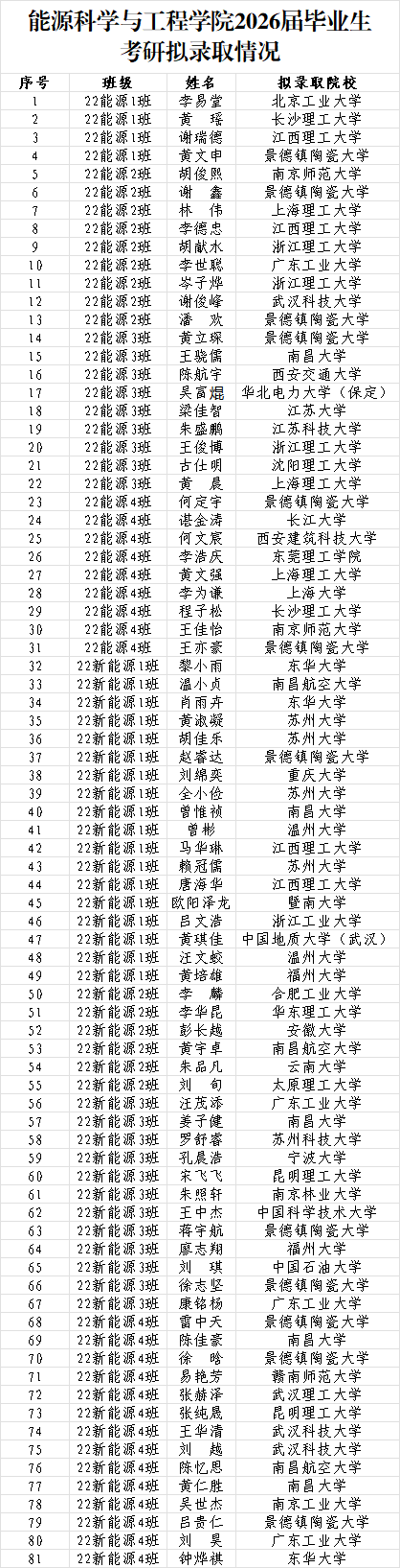 首届考研告捷,是新起点,更是新动力。能源科学与工程学院将以此为契机,持续深化教育教学改革,强化学风建设,优化升学服务,不断提升人才培养质量。