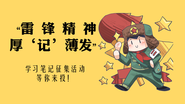 三月春风暖人心,雷锋精神永传承。为深入学习弘扬雷锋精神,引导广大青年学子在书写中感悟精神力量、在实践中践行志愿初心,特开展“雷锋精神 厚‘记’薄发”学习笔记征集活动,面向全校学子发出诚挚邀约!